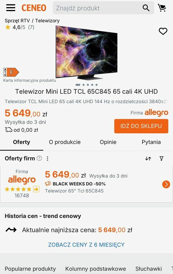 Telewizor TCL 65C845 wyposażony w technologię MiniLed to idealne rozwiązanie dla osób szukających doskonałej jakości obrazu. Dzięki innowacyjnemu systemowi oświetlenia telewizor zapewnia głęboką czerń i jasne, nasycone kolory. Doskonały wybór dla kinomaniaków i miłośników wysokiej rozdzielczości.Używany sporadycznie od półtora roku, wszystko działa idealnie płynnie bez zawieszeń. Jeszcze na gwarancji producenta.